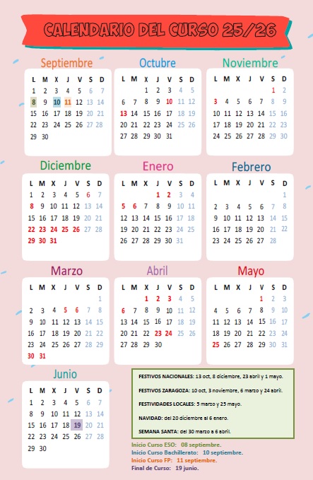 CALENDARIO ACTIVIDADES EXTRAESCOLARES